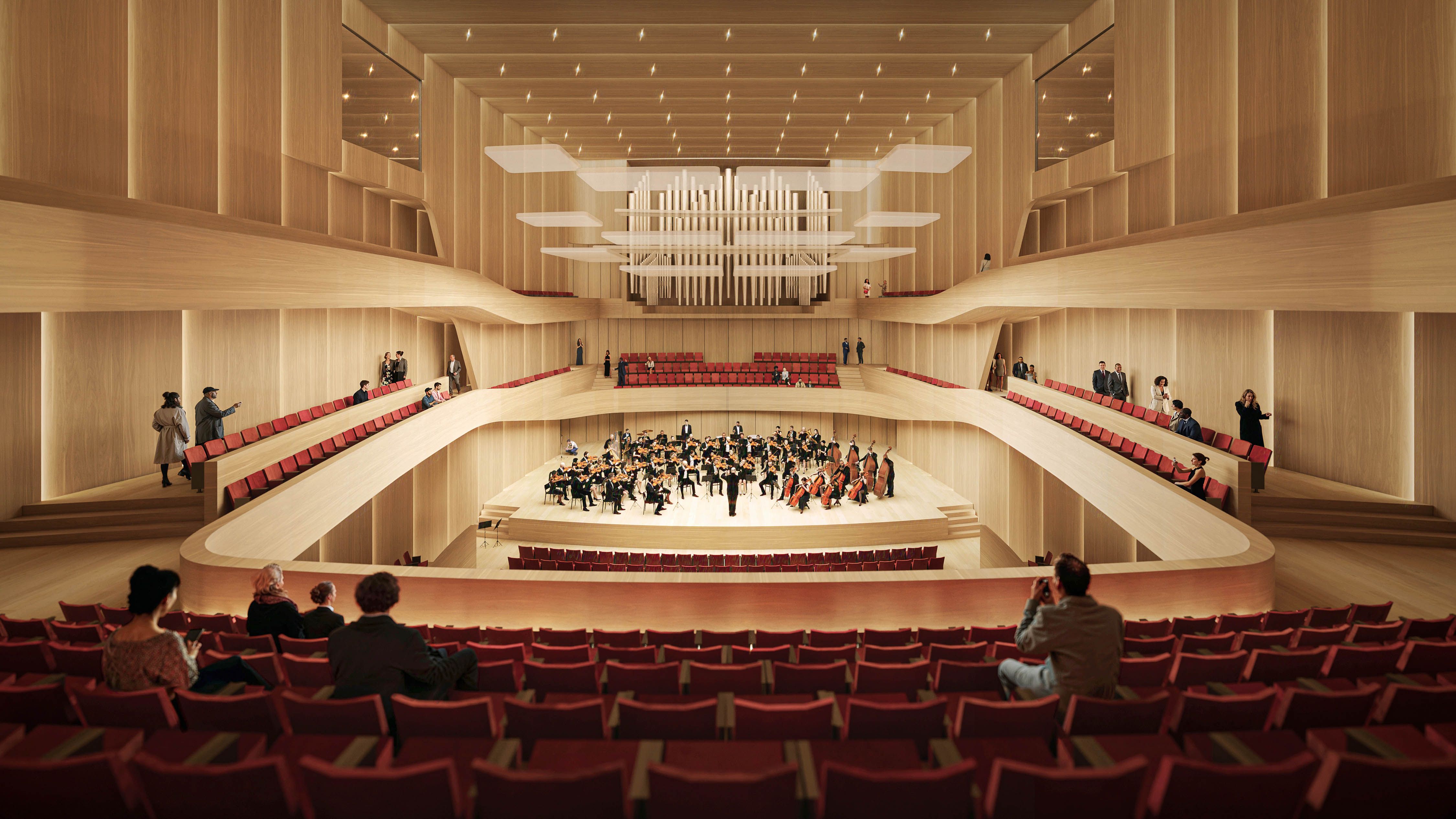 The areas surrounding the hall act as a public prelude to the musical experience within this new cultural treasure chest. Designed as a third place, these spaces are highly flexible and can be used for exhibitions, events, and other community activities.