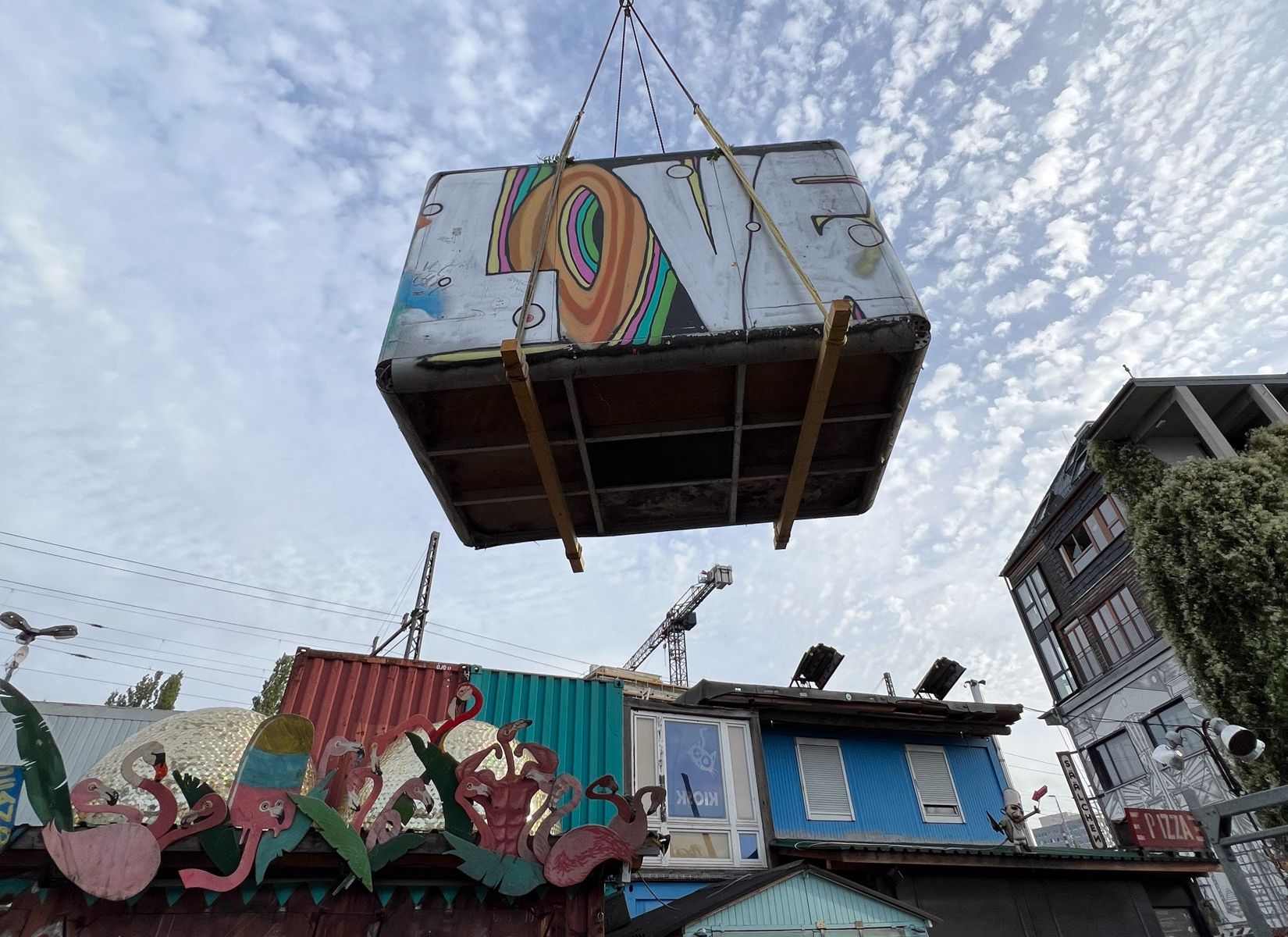 Es stehen nun über 250 Solarkioske als nachhaltige Energy Hubs auf drei Kontinenten verteilt, so war der Wunsch einen Prototypen in den Ausstellungsräumen zu platzieren keine einfach lösbare Aufgabe. Bei der Recherche und Absprache mit Solarkiosk Mitgründer Andreas Spiess stellte sich jedoch heraus, dass sich ein Solarkiosk noch in Berlin befindet - nur in einer ganz anderen Form als erwartet. Denn bei dem ausgestellten Kiosk handelt es sich um den ersten Prototypen dieses Projektes, welcher vor 14 Jahren konzipiert und hier in Berlin zusammengebaut wurde. Nach der Testphase wurde dieser Kiosk Teil des Berliner Nachtlebens und kam bei unseren Freunden vom Holzmarkt im Kater Blau unter. Dort wurde er schnell zum festen Bestandteil des bekannten Berliner Clubs. Die durchzechten Nächte als Bar und Tresen machten sich bald in Form von vielen Graffitis auf dem Objekt selbst bemerkbar.