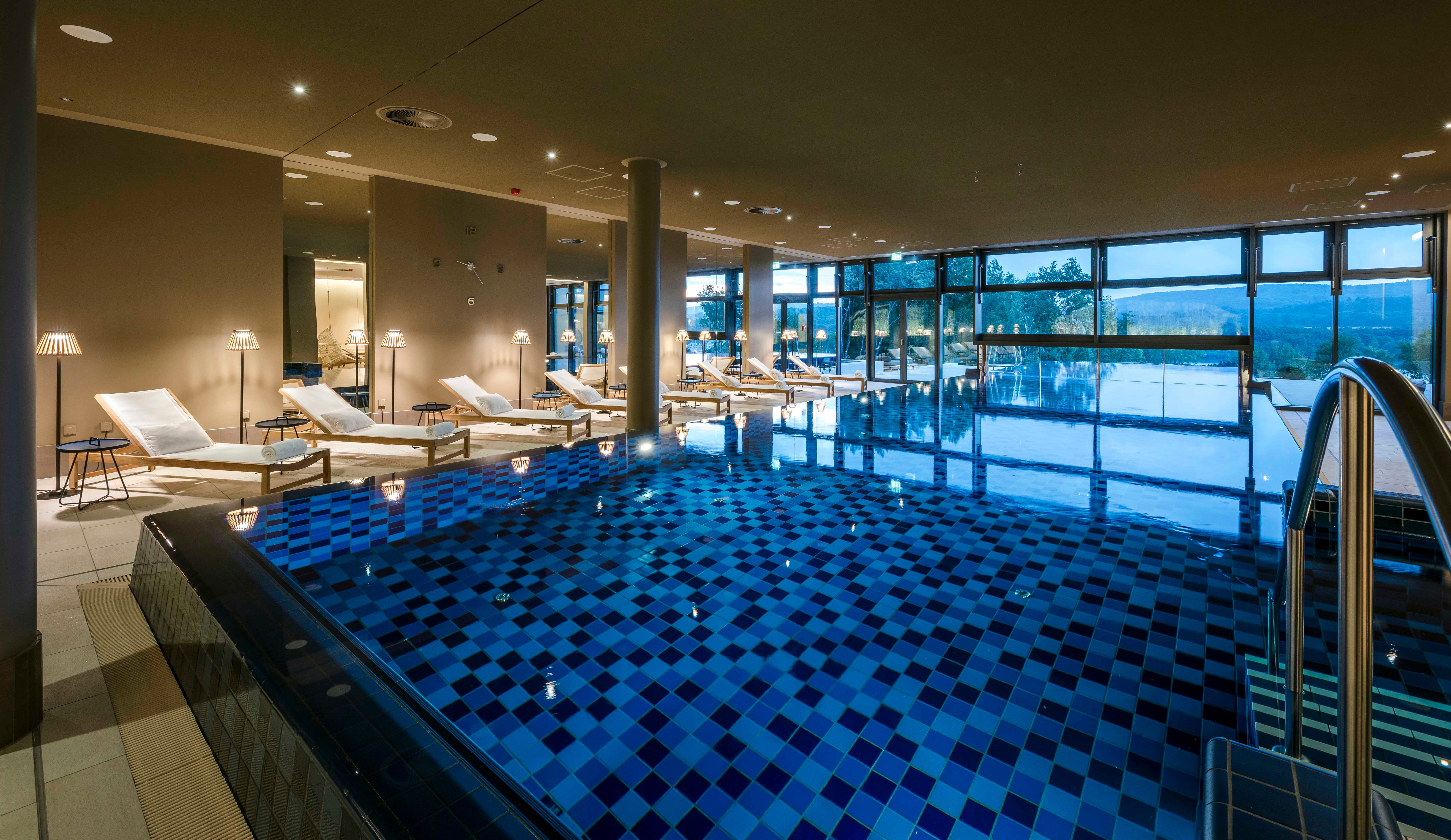 Die Spa- und Wellnesslandschaft kann sich zum Wald hin ausdehnen und bildet abgeschirmt von der Öffentlichkeit einzigartige räumliche Qualitäten aus.